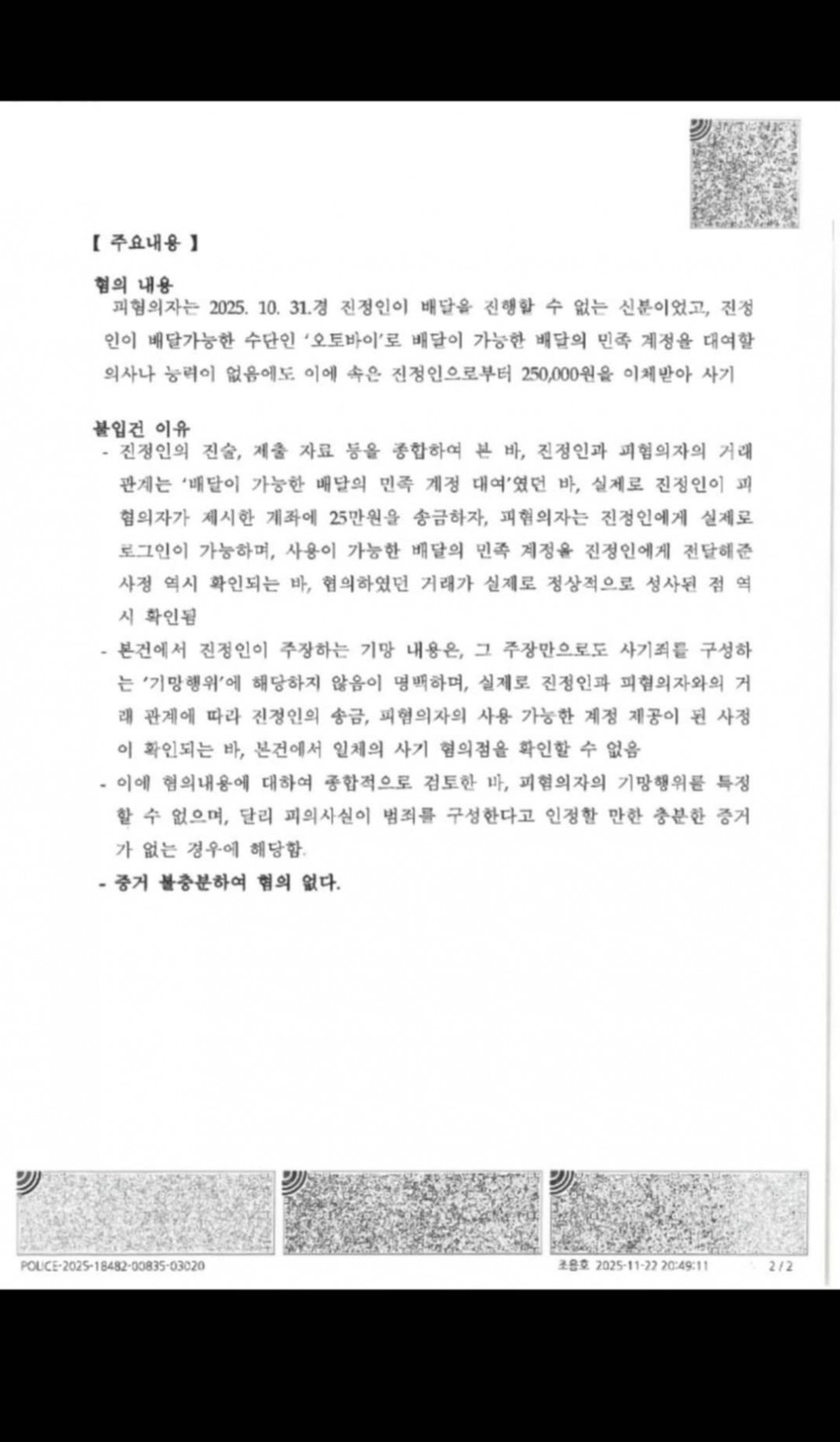베민의 민죽 계정을 받았는데 ‘오토바이‘로 사용못했습니다. 거래 완료하지않았습니다. 경찰서로부터 불입건결정 통지서를 받았습니다. 지금 이의신청이나 민사소송 해야는지 알어주세요. 감사합니다.